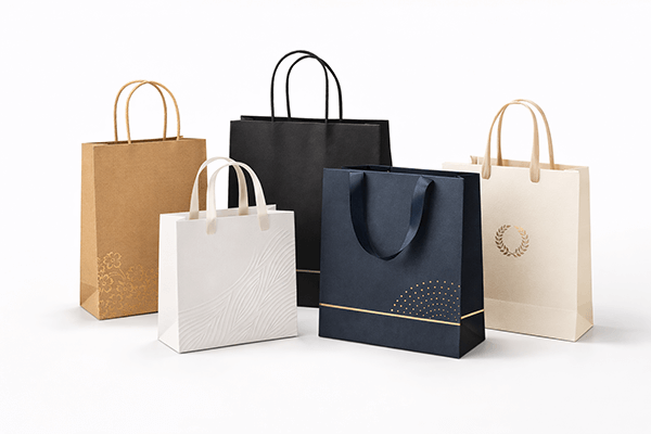 Custom paper bags manufactured with strong materials and premium finishes, providing a sustainable and stylish packaging solution for retail and brand presentation. Offered with Special Finishes to make your brand stand out!